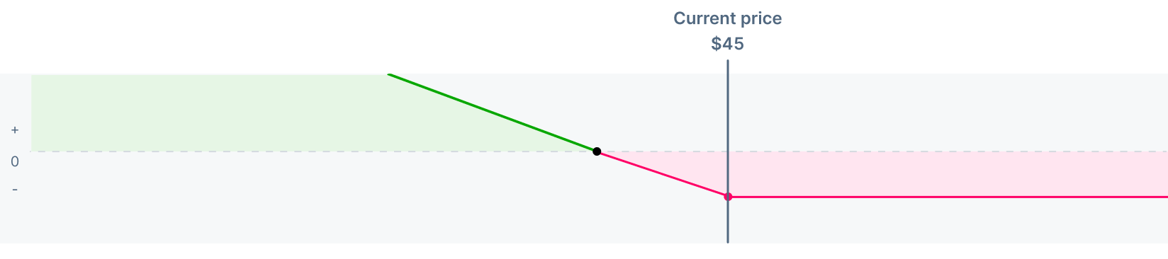 Now, assume you buy a put option with a $45 strike price, expiring in six months, for a premium of $2.50.